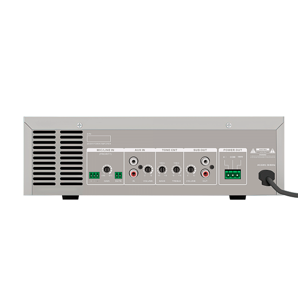 Q-60 младшая модель выходной мощностью на 60Вт/100В или 60Вт/4Ом. Она как и все современные аппараты оснащена встроенным USB/Bluetooth плеером с поддержкой форамтов MP3 и WAV, что важно последний формат не всегда поддержитвается в аналогичных устройствах. WAV формат позволяет использовать музыкальный конетент с более высоким качеством чем MP3.