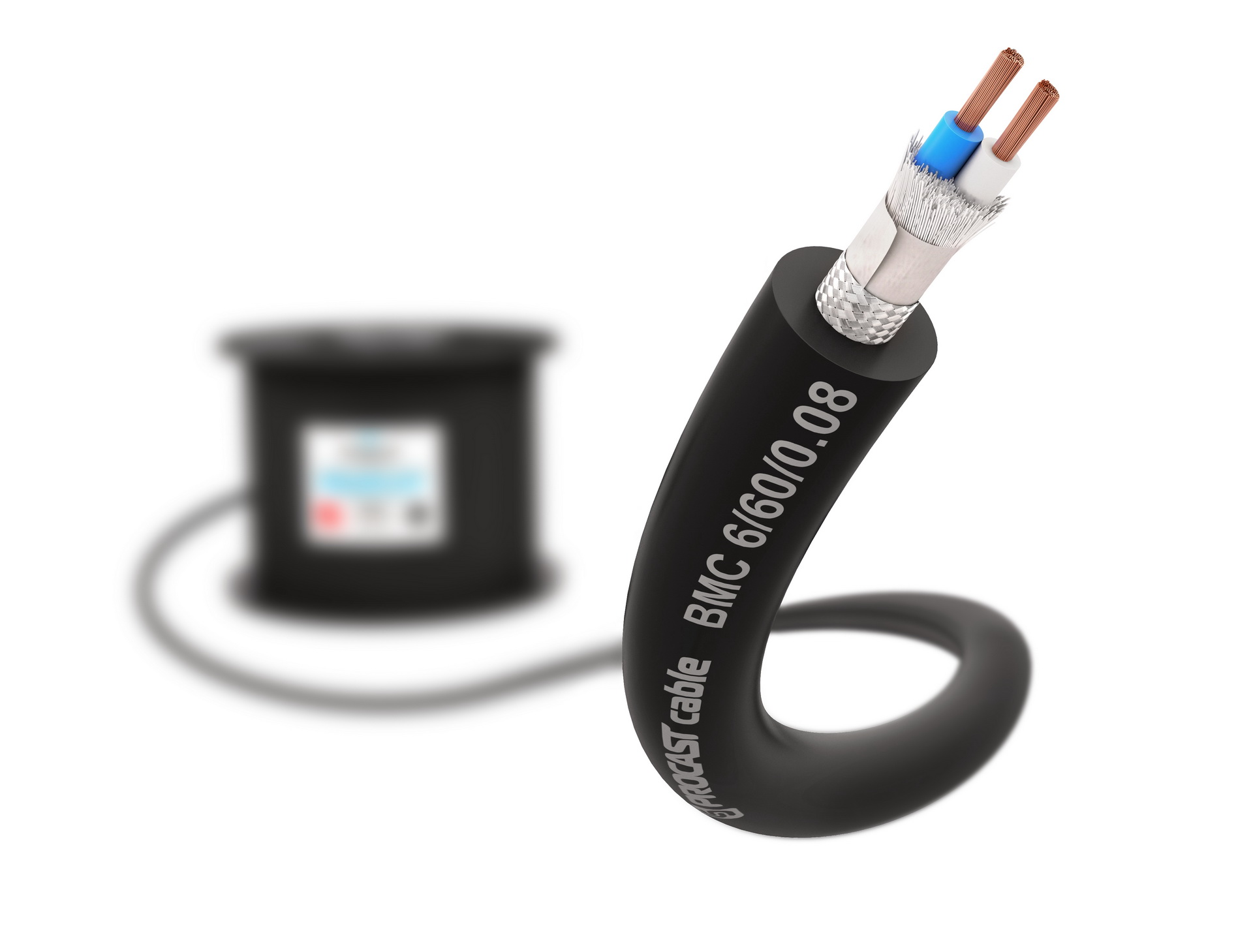PROCAST Cable BMC 6/60/0.08 – профессиональный балансный микрофонный (сигнальный) кабель для подключения балансных микрофонов, симметричных и стереофонических источников линейного звукового сигнала. Рекомендуемая длина трассы – до 100 метров. Внешний диаметр кабеля – 6мм, цвет внешней PVC изоляции черный, две центральные жилы имеют красно-черную XLPE изоляцию.