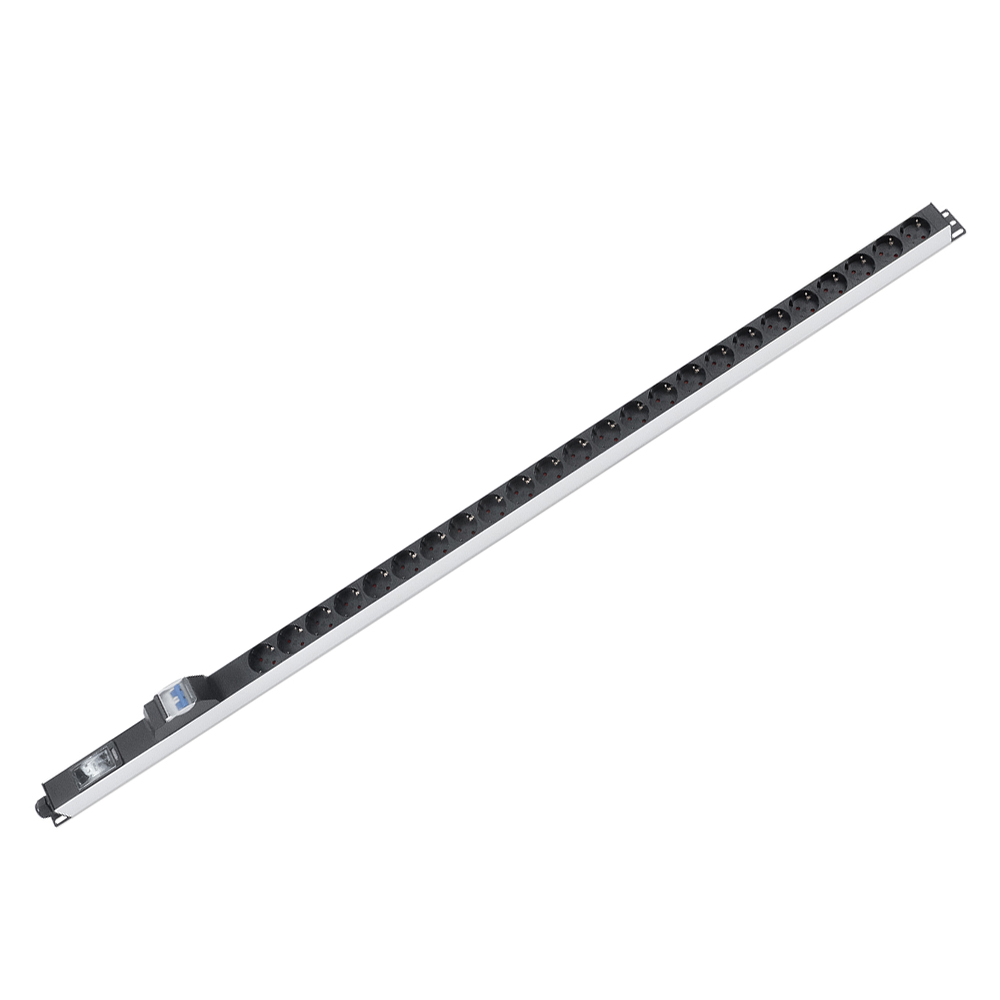 Cabeus PDU-32-24S-B-T Блок розеток для 19" шкафов, вертикальный, 24 розетки Schuko, 32А, автомат защиты, алюминиевый корпус, клеммная колодка