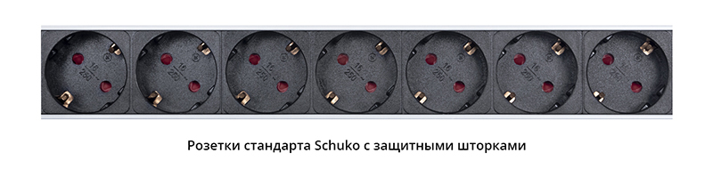 Блок розеток имеет 24 порта стандарта Schuko и автомат защиты на 32А. Для подключения внешнего шнура (кабеля) предусмотрена клеммная колодка под провод номинальным сечением до 4 мм2. Блок розеток предназначен для установки в шкафы 32U и выше. Поставляется в индивидуальной упаковке с комплектом крепежа.