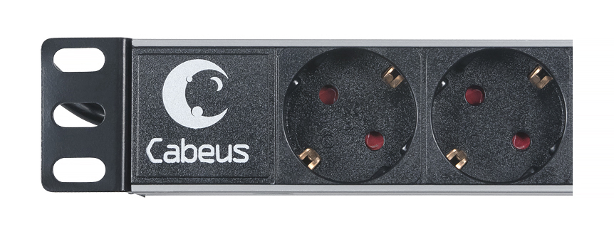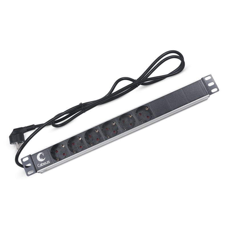 Cabeus PDU-6P-2EU Блок евророзеток для 19" шкафов, горизонтальный, 6 розеток, 16 A, без выключателя, шнур 2м, алюминиевый корпус, немецкий стандарт