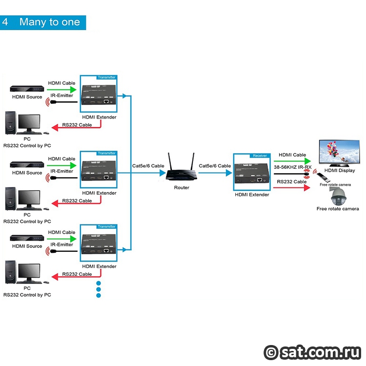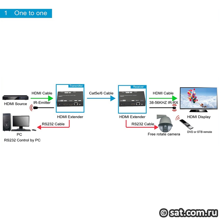 - Передача HD-сигнала до 120м по одному кабелю "витая пара" cat5e/6