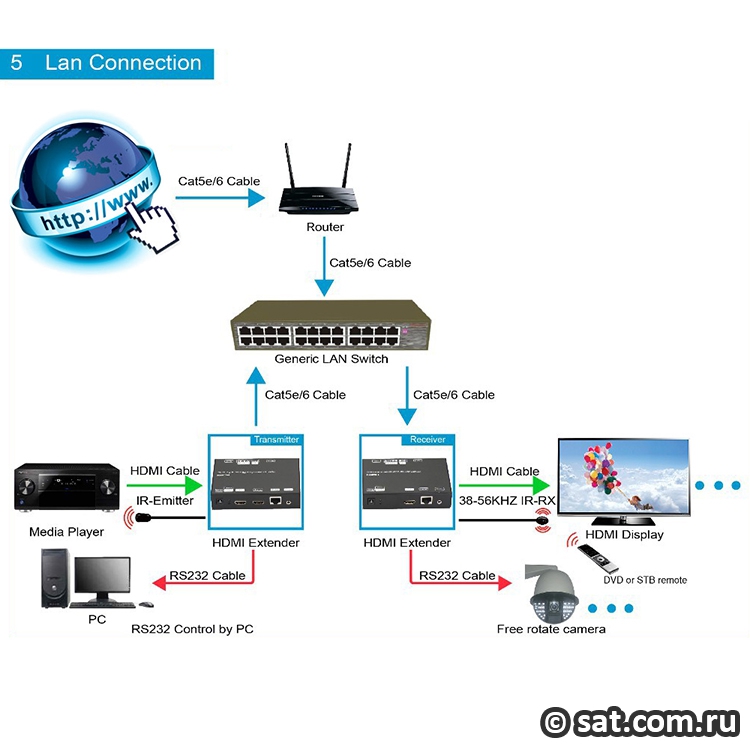 Dr.HD EX 120 LIR HD - комплект приемник-передатчик HDMI удлинитель по "витой паре" с возможностью интеграции в локальную сеть. Имеет ряд выдающихся функций, благодаря которым эта модель заметно выделяется среди прочих. Стоит отметить, прежде всего, компрессию HD-сигнала с помощью H.264, возможность присваивать устройствам конкретный IP адрес, возможность создавать несколько отдельных групп (разные видео источники), управление по IP и ИК управление с пульта. Может работать в сети и существенно не влияет на её скорость!