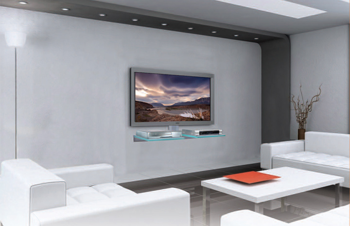 Стильная подвесная инсталляция ANTALL INSTALL-03 с двумя полками под ТВ аппаратуру выполнена из стекла с закруглёнными углами производства Glaverbel (Бельгия) толщиной 15 мм. Прочный металлический корпус широкого настенного кронштейна обеспечивает повышенную жесткость инсталляции и позволяет выдерживать нагрузки до 12 кг, а металлический кожух позволяет полностью скрыть провода, соединяющие аппаратуру между собой и плазменной панелью. Вы можете заказать ANTALL INSTALL-03 по индивидуальному оформлению с учетом всех Ваших требований у производителя через компанию "5 Колонок" в Москве с доставкой по России.