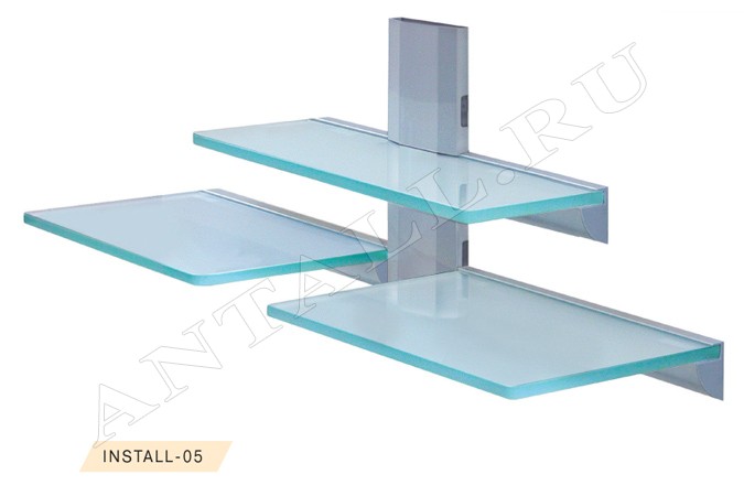 Стильная подвесная инсталляция ANTALL INSTALL-05/2 с тремя полками под ТВ аппаратуру выполнена из стекла с закруглёнными краями производства Glaverbel (Бельгия) толщиной 15 мм. Прочный металлический корпус широкого настенного кронштейна обеспечивает повышенную жесткость инсталляции и позволяет выдерживать нагрузки до 12 кг, нижняя полка 18 кг, а металлический кожух позволяет полностью скрыть провода, соединяющие аппаратуру с плазменной панелью. Последовательность расположения кожухов и полок в ANTALL INSTALL-05/1 можно менять между собой местами.