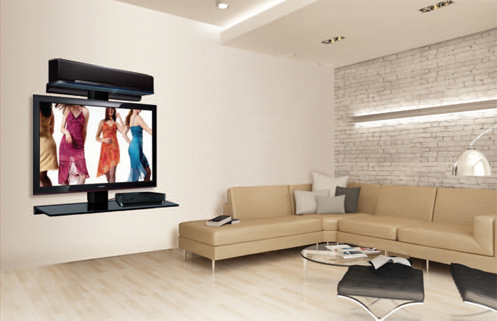 Стильная подвесная полка-инсталляция ANTALL INSTALL-11 под ТВ аппаратуру выполнена из стекла с закруглёнными углами производства Glaverbel (Бельгия) толщиной 15 мм. Прочный металлический корпус широкого настенного кронштейна обеспечивает повышенную жесткость инсталляции и позволяет выдерживать нагрузки до 15 кг, а металлический кожух позволяет полностью скрыть провода, соединяющие аппаратуру с плазменной панелью. Данную полку ANTALL INSTALL-11 можно располагать как снизу так и сверху над телевизором.