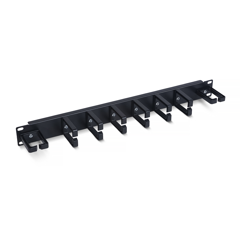 Cabeus JB08-1U-PR-BK Кабельный органайзер горизонтальный 19" 1U, 8 пластиковых колец, металлический, цвет черный (RAL9004)