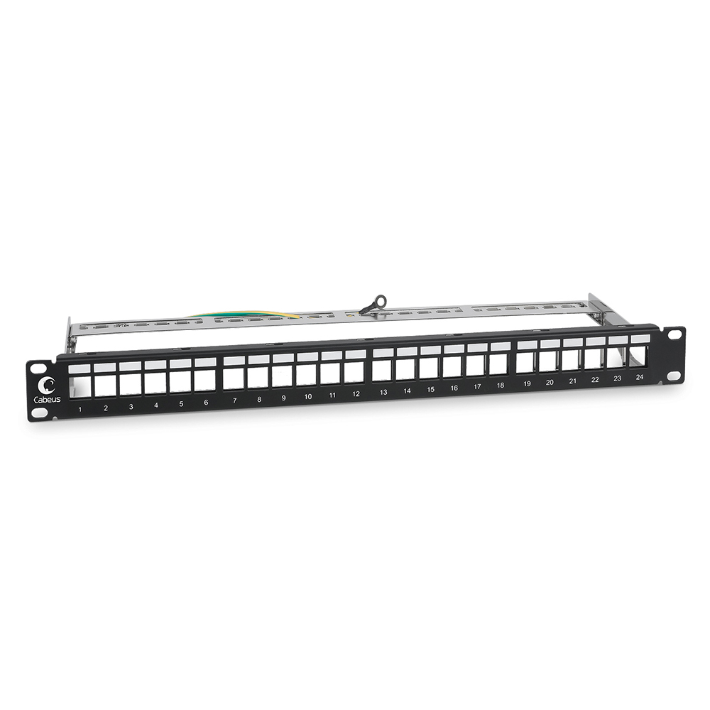 Cabeus PLB-24-SH Модульная патч-панель 19", 24 порта, 1U, для экранированных модулей, с задним кабельным организатором (без модулей)