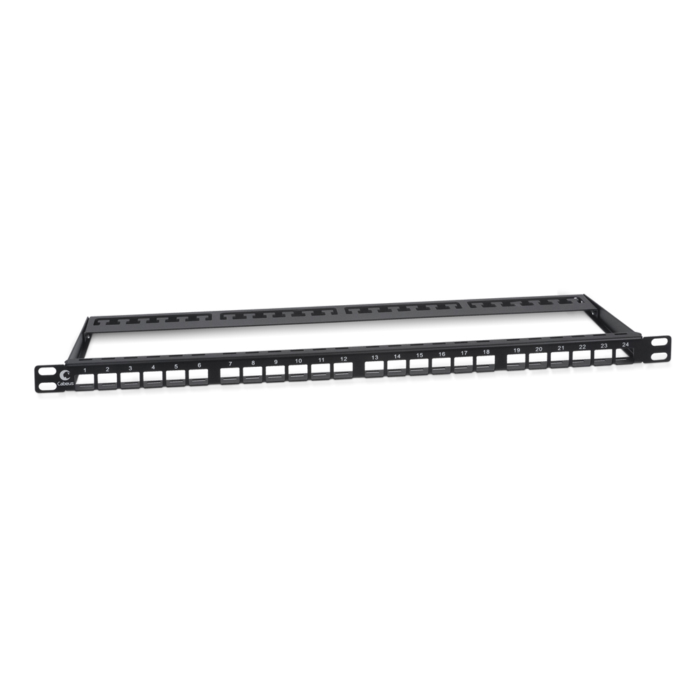 Модульная патч-панель Cabeus выполнена в 19” формате и предназначена для установки в телекоммуникационные шкафы и стойки. Имеет высоту 0,5U