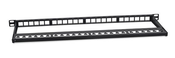 Используется для установки 24 неэкранированных модулей типа Keystone. Модульные патч-панели обеспечивают максимальную гибкость при эксплуатации сетей, позволяя легко и быстро переконфигурировать систему соединений под индивидуальные потребности.