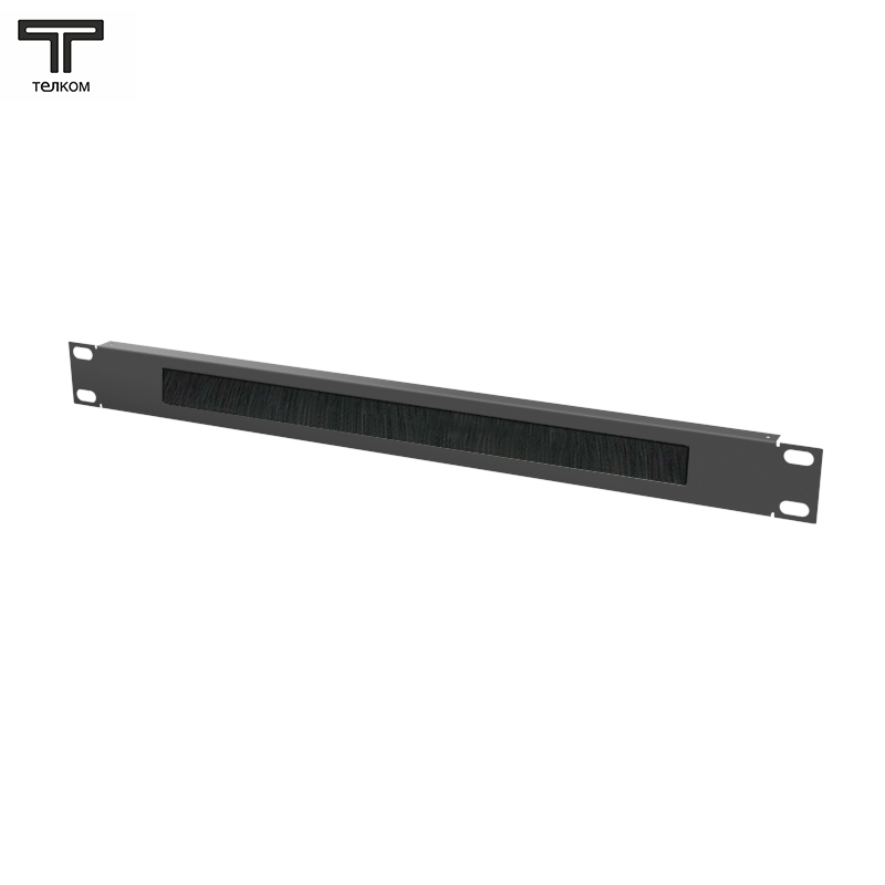 Органайзер кабельный горизонтальный с щеточным вводом 19" ТЕЛКОМ ОКГЩ.19.1.9005М, высота 1U, цвет черный (RAL9005М)