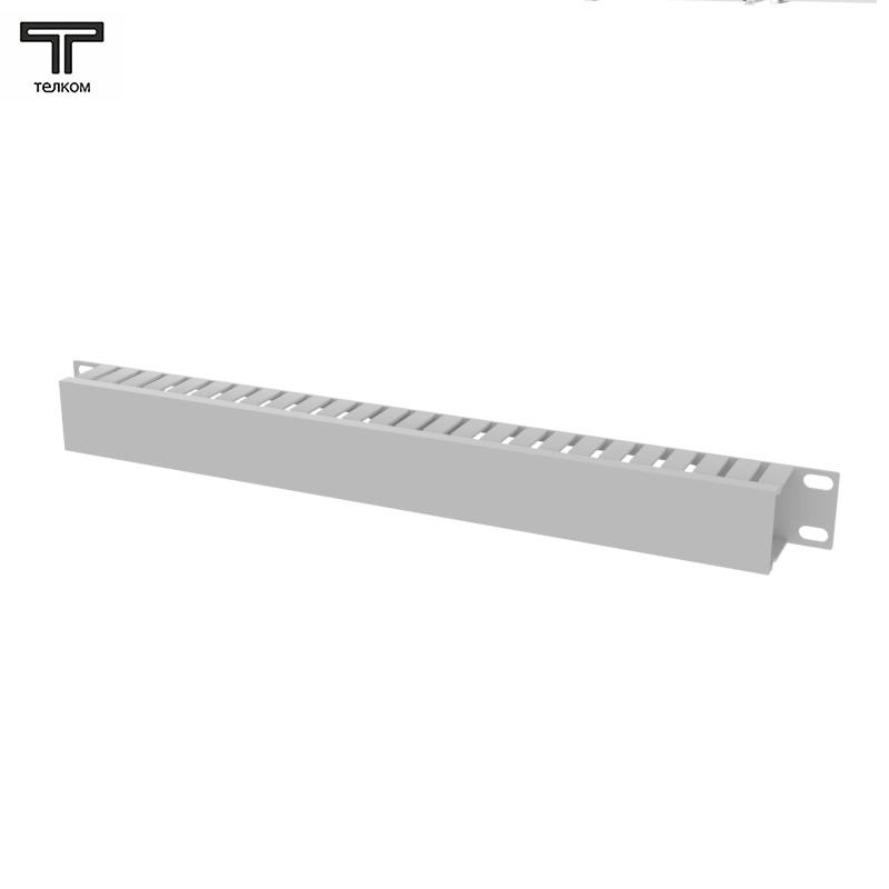 Органайзер с крышкой кабельный горизонтальный 19” ТЕЛКОМ ОКГК.19.1.7035М, высота 1U, цвет серый (RAL7035М)