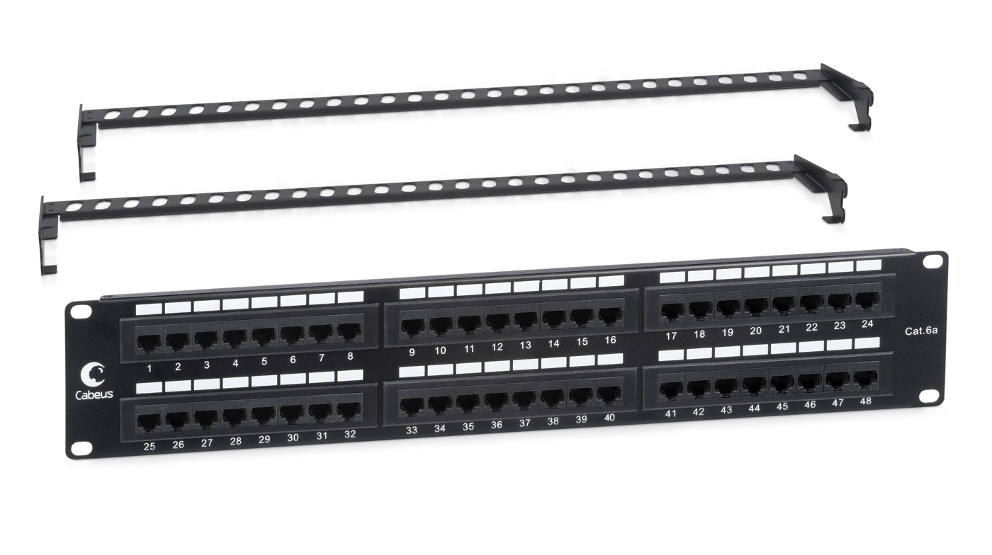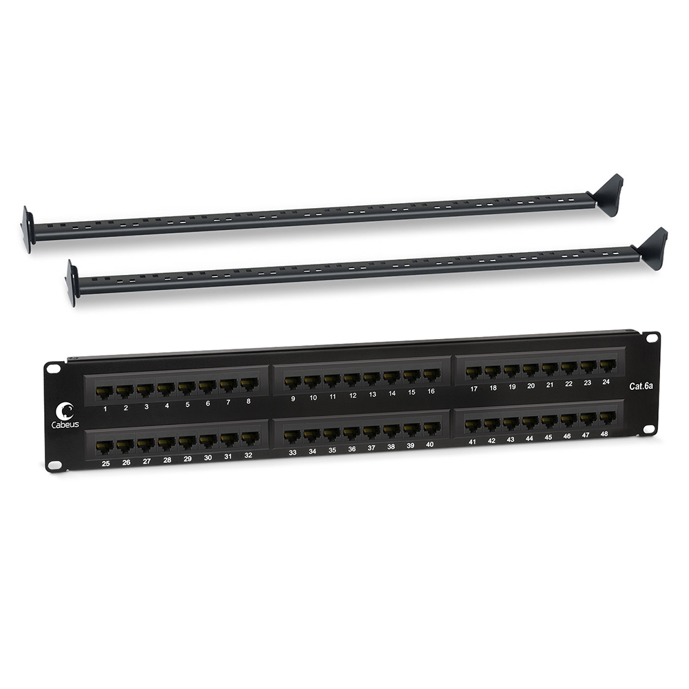 Cabeus PL-48-Cat.6a-Dual IDC Патч-панель 19" (2U), 48 портов RJ-45, категория 6a, Dual IDC, с задним кабельным организатором