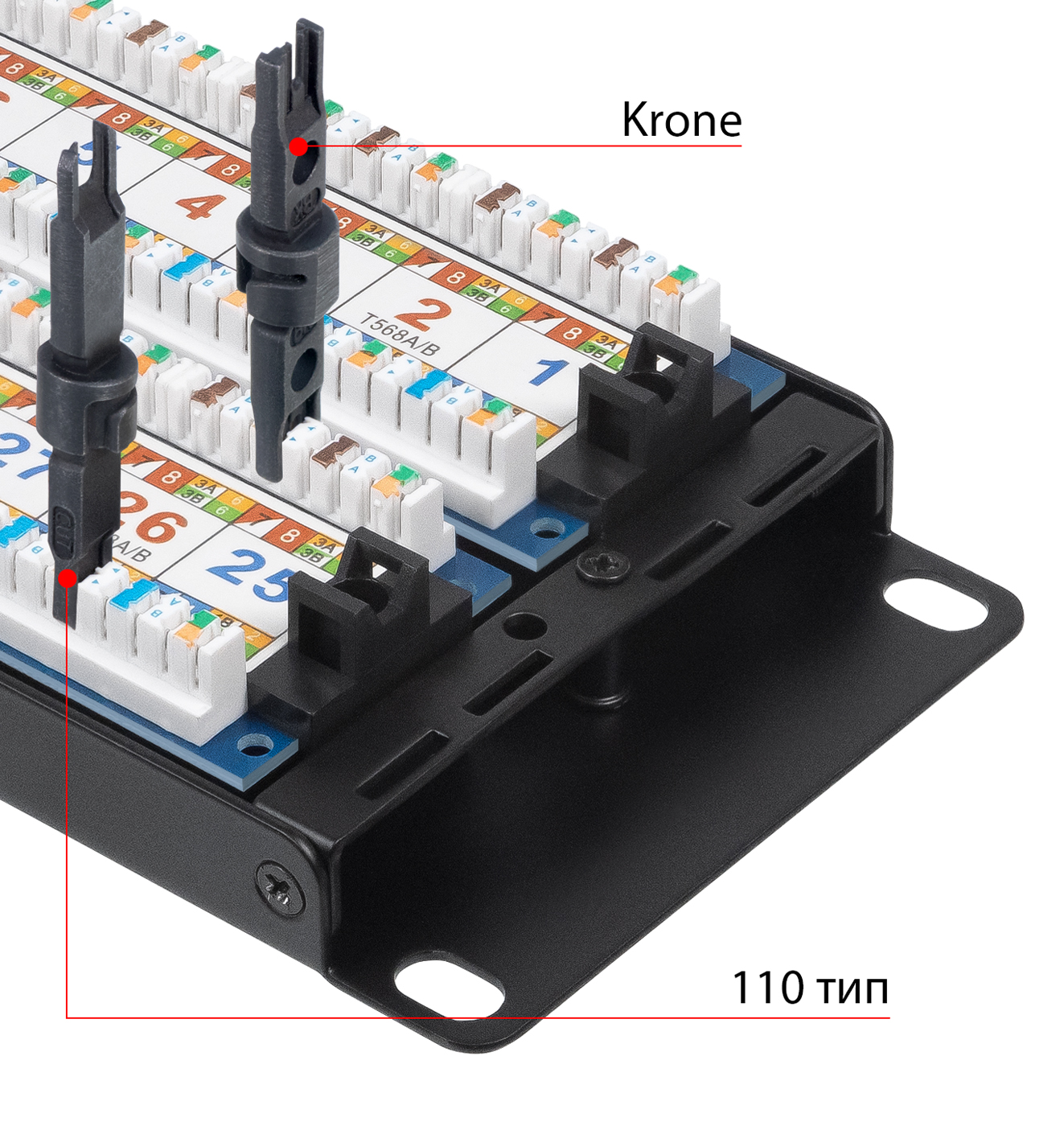 - Для заделки кабеля применяется ударный инструмент 110 типа или Krone