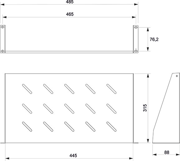 Полка имеет перфорацию, позволяющую охлаждать технологическое оборудование.