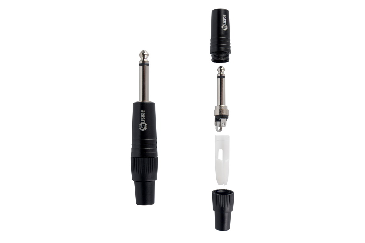 PROCAST Cable TR-6.3/6/M/M – TR Jack (male) 6.3mm разъем под пайку. Разъем двухконтактный, монофонический, не балансный. Разъем рассчитан на применение совместно с сигнальным/инструментальным/микрофонным не балансным кабелем с внешним диаметром 6mm.