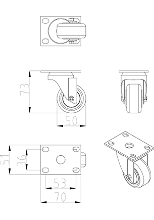 Опора Листовая сталь 2 мм Колесо Полиамид, диаметр 50 мм Максимально допустимая нагрузка 200 кг Цвет Черный