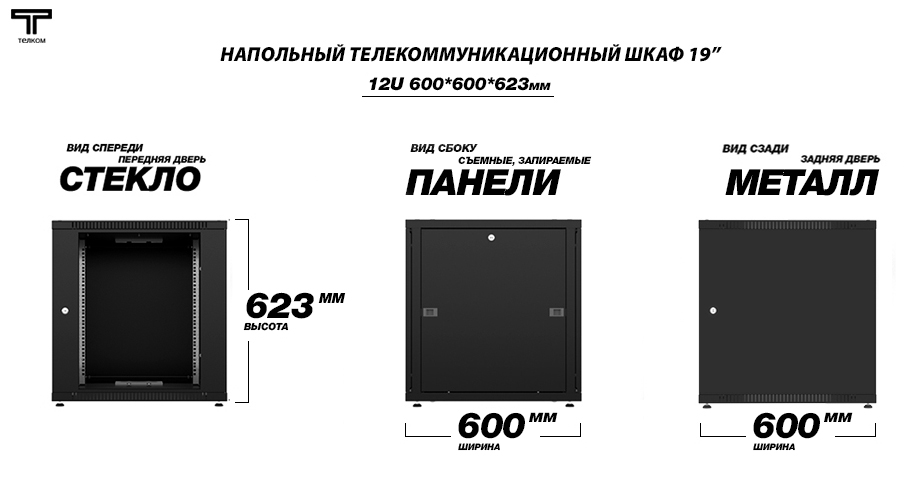 - Тип размера: 12U (ШхГхВ) 600х600x623мм.