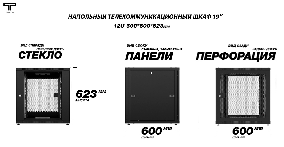 - Тип размера: 12U (ШхГхВ) 600х600x623мм.