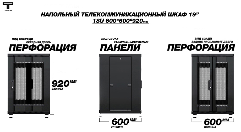 - Тип размера: 18U (ШхГхВ) 600х600x920мм.