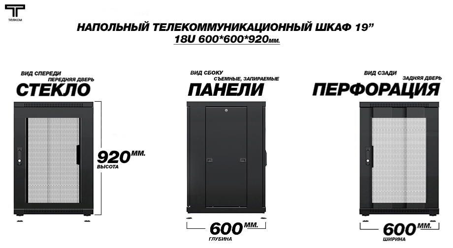 - Тип размера: 18U (ШхГхВ) 600х600x920мм.