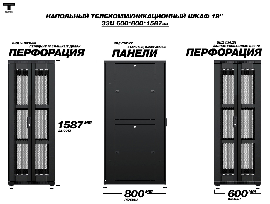 - Тип размера: 33U (ШхГхВ) 600х800x1587мм.