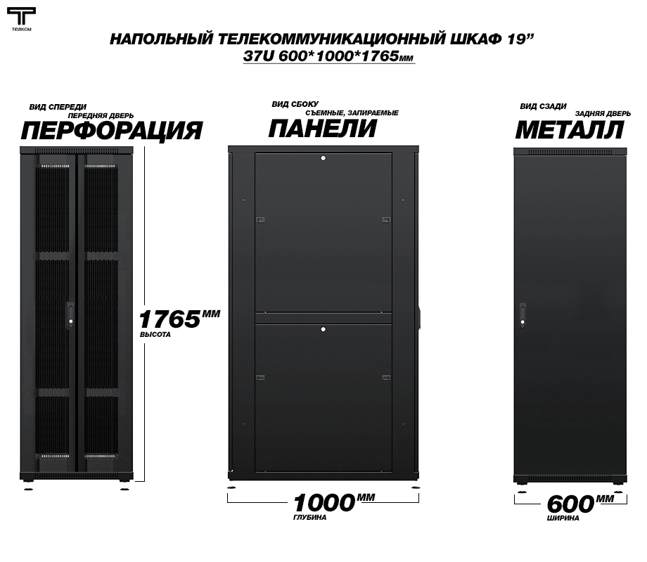 - Тип размера: 37U (ШхГхВ) 600х1000x1765мм.