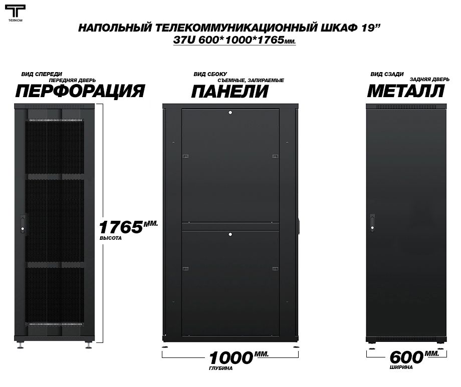 - Тип размера: 37U (ШхГхВ) 600х1000x1765мм.