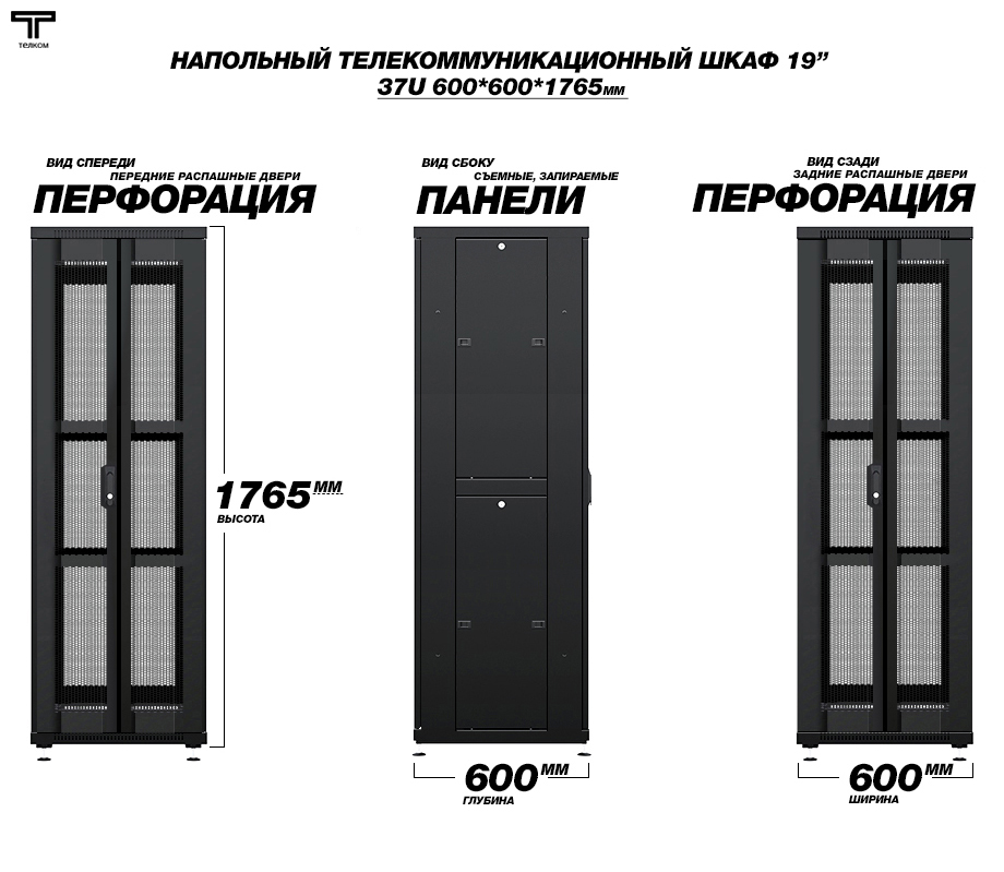 - Тип размера: 37U (ШхГхВ) 600х600x1765мм.