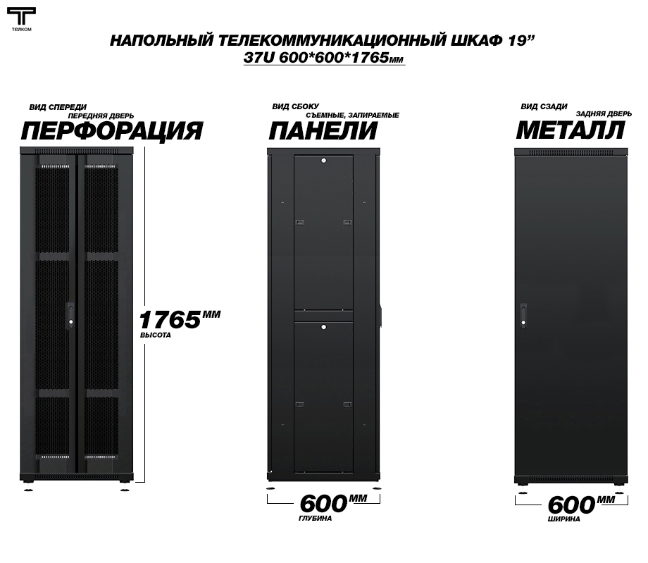 - Тип размера: 37U (ШхГхВ) 600х600x1765мм.
