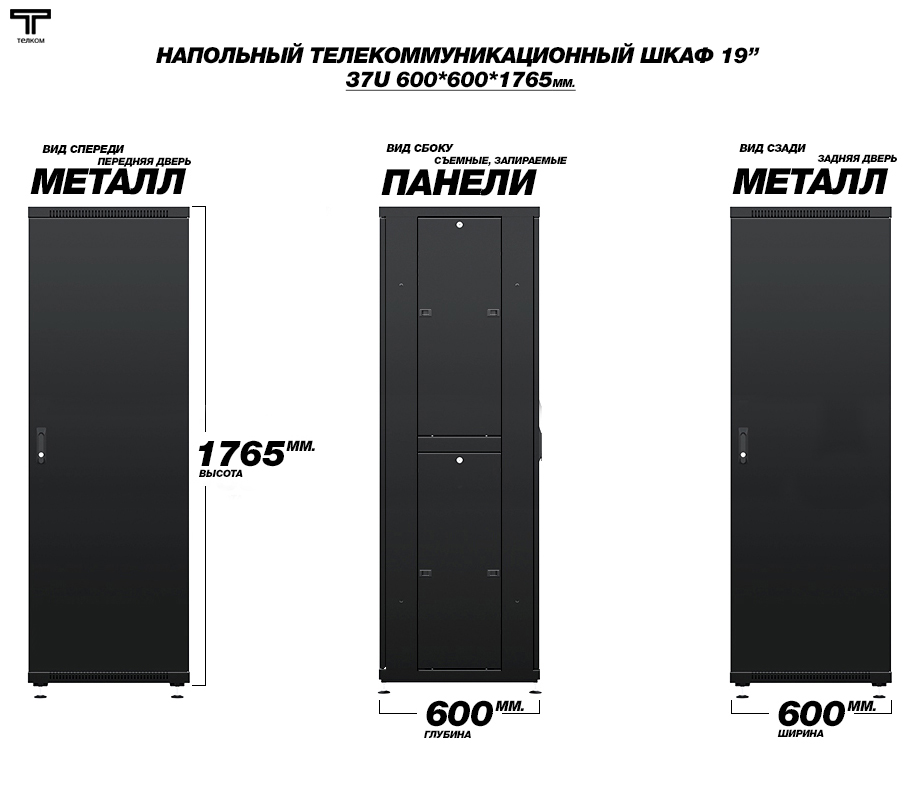 - Тип размера: 37U (ШхГхВ) 600х600x1765мм.