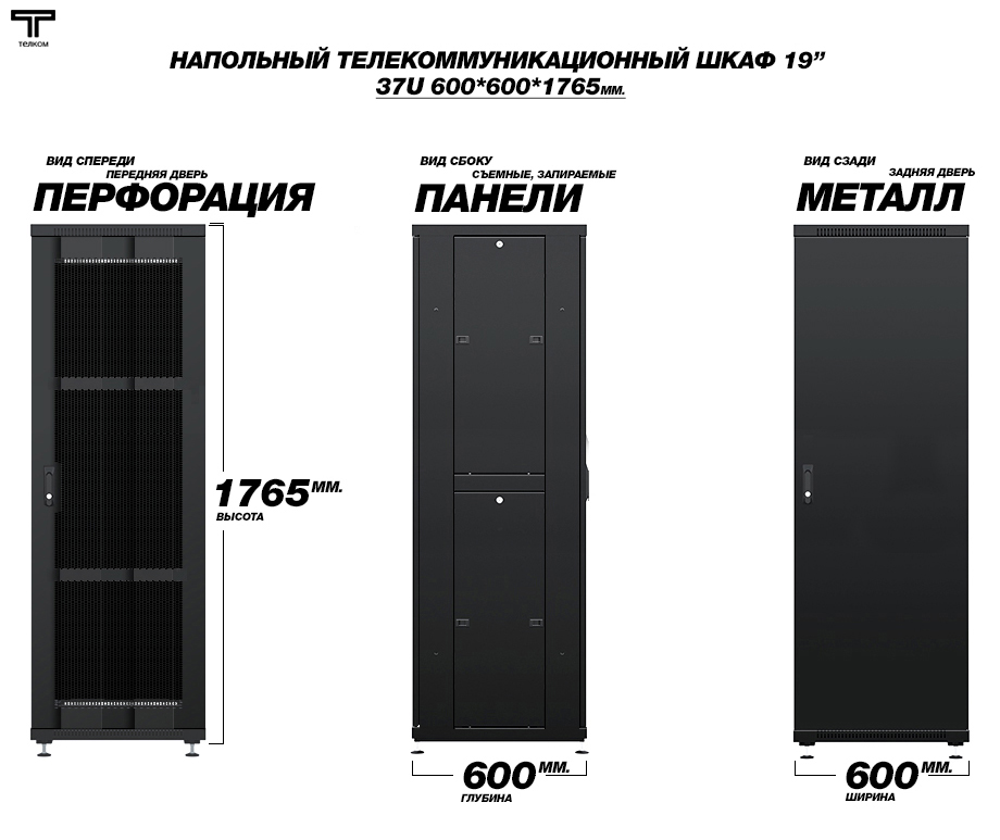 - Тип размера: 37U (ШхГхВ) 600х600x1765мм.