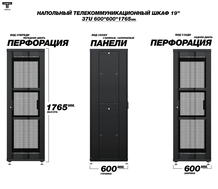 - Тип размера: 37U (ШхГхВ) 600х600x1765мм.