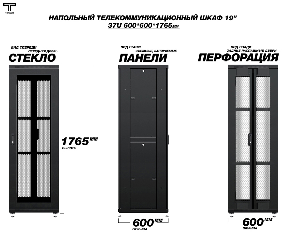 - Тип размера: 37U (ШхГхВ) 600х600x1765мм.