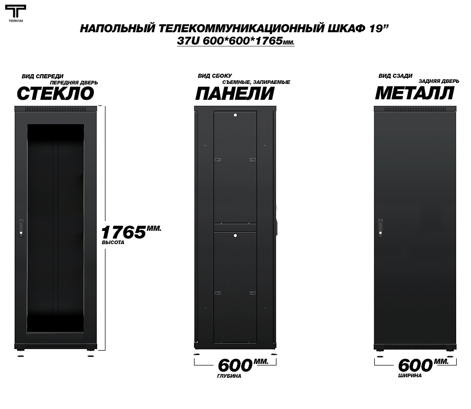 - Тип размера: 37U (ШхГхВ) 600х600x1765мм.