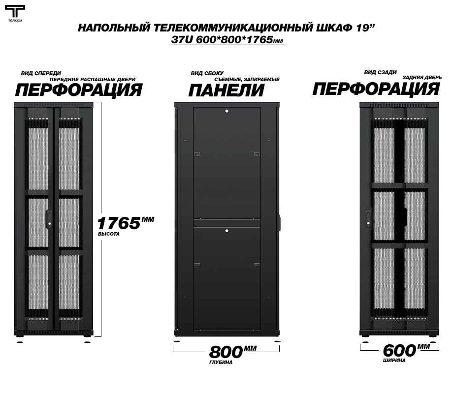 - Тип размера: 37U (ШхГхВ) 600х800x1765мм.