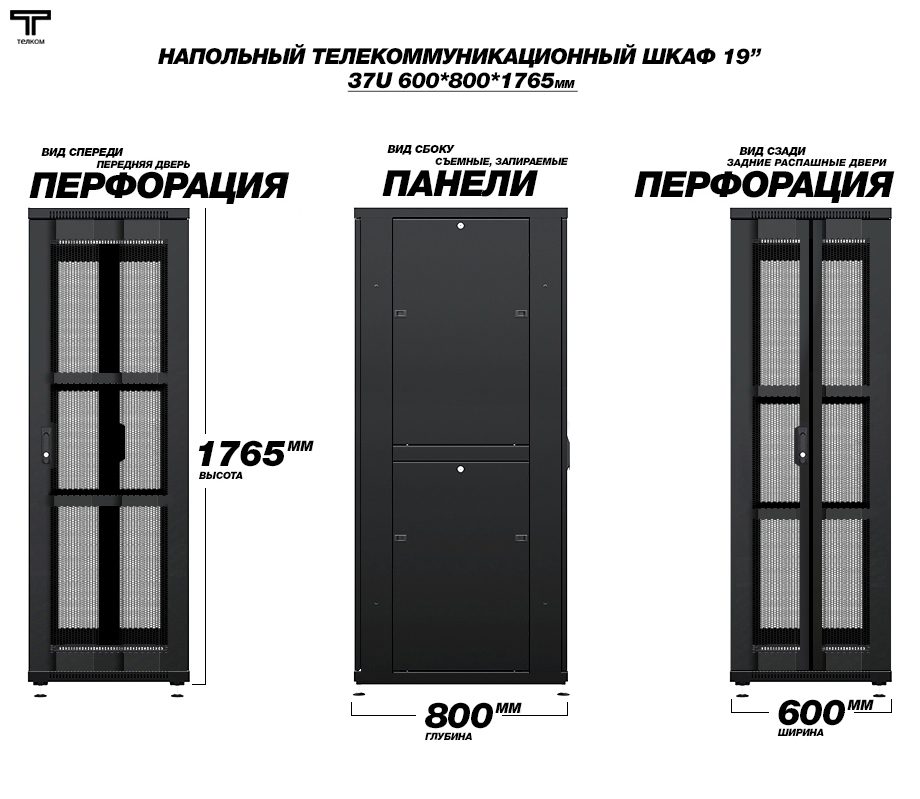 - Тип размера: 37U (ШхГхВ) 600х800x1765мм.