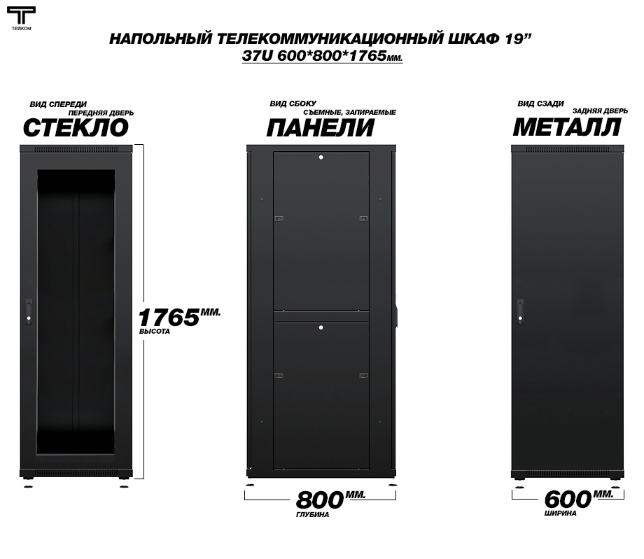 - Тип размера: 37U (ШхГхВ) 600х800x1675мм.