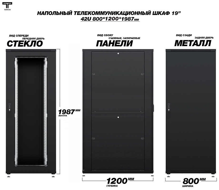 - Тип размера: 42U (ШхГхВ) 800х1200x1987мм