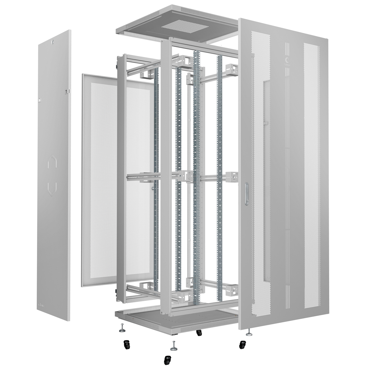 - основанием с люками для ввода кабеля, комплектом крепежа для установки оборудования (30шт.), регулируемыми опорами, роликовыми опорами.