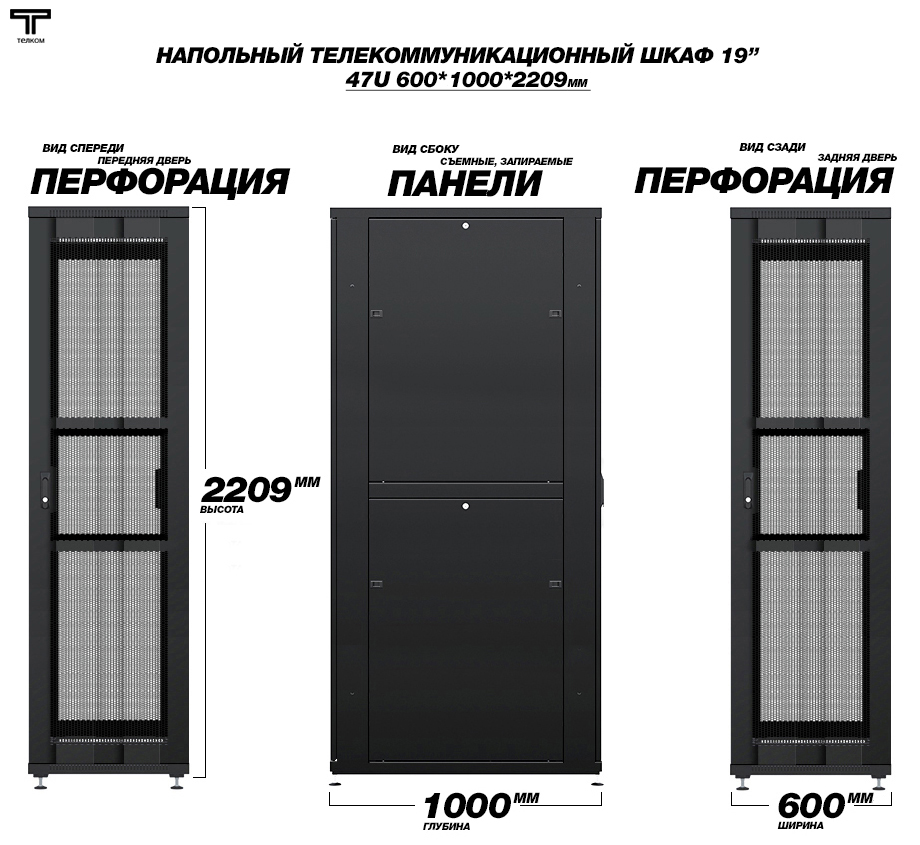 - Тип размера: 47U (ШхГхВ) 600х1000x2209мм.