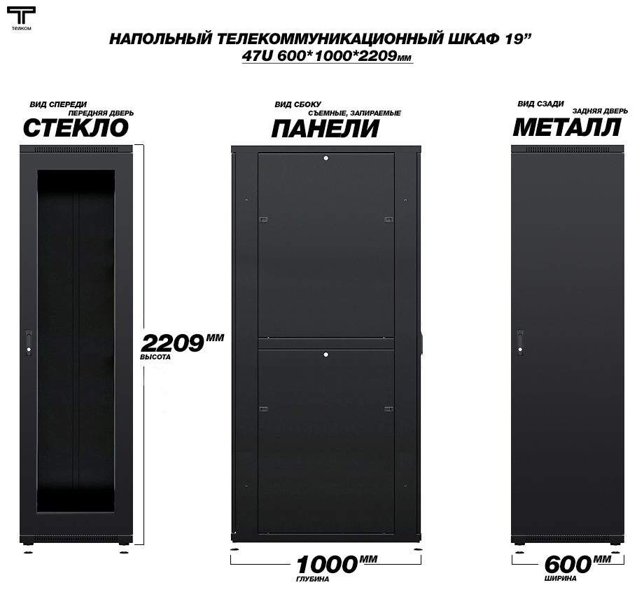 - Тип размера: 47U (ШхГхВ) 600х1000x2209мм.