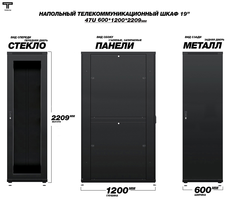 - Тип размера: 47U (ШхГхВ) 600х1200x2209мм.