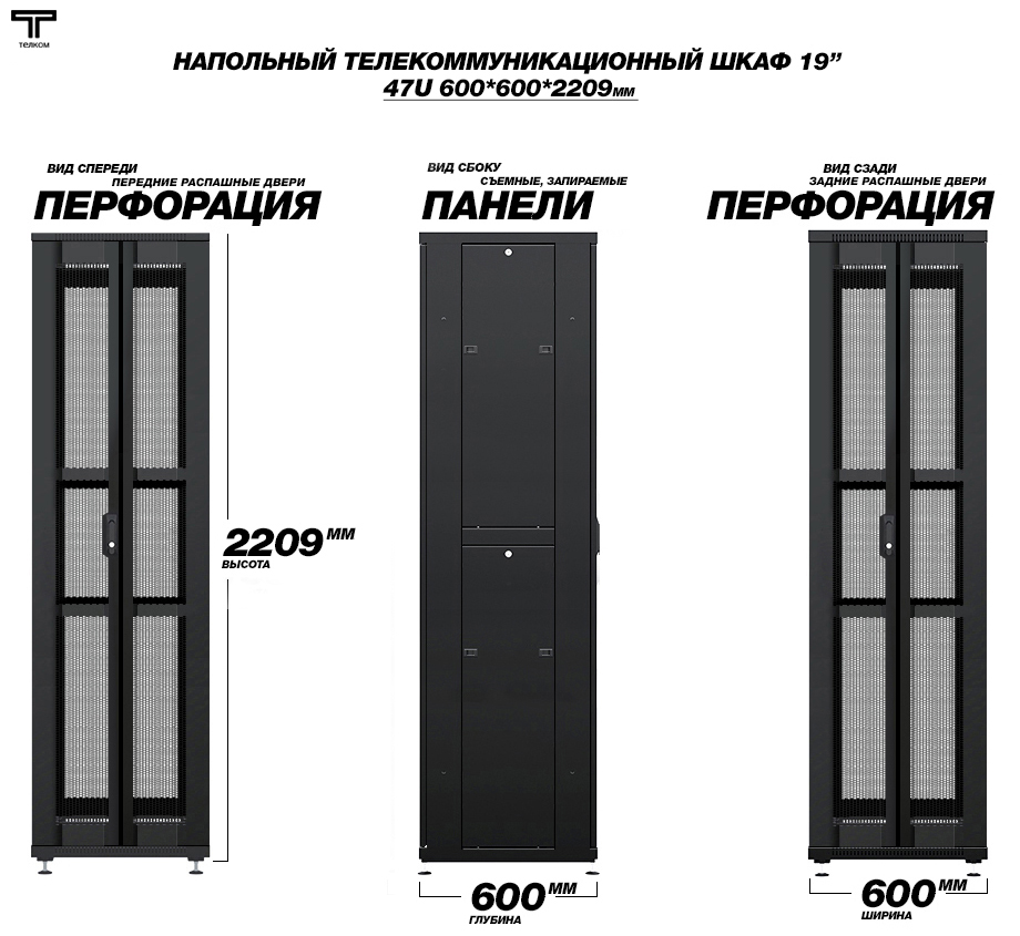 - Тип размера: 47U (ШхГхВ) 600х1000x2209мм.