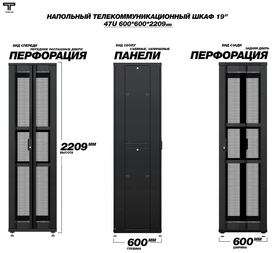 - Тип размера: 47U (ШхГхВ) 600х1000x2209мм.