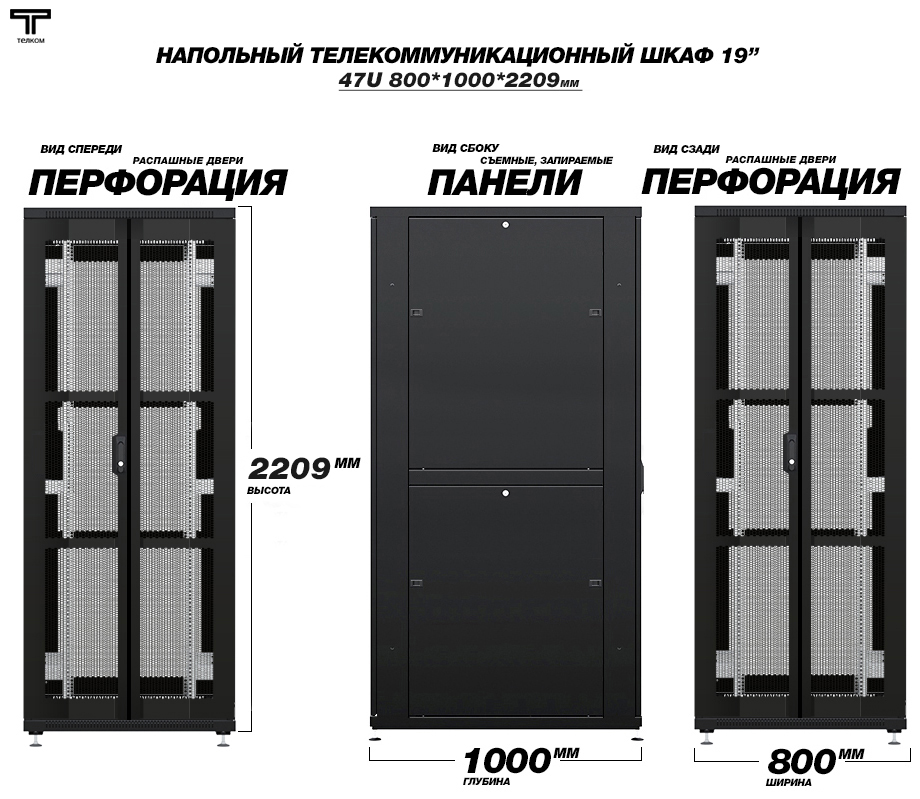 - Тип размера: 47U (ШхГхВ) 800х1000x2209мм.