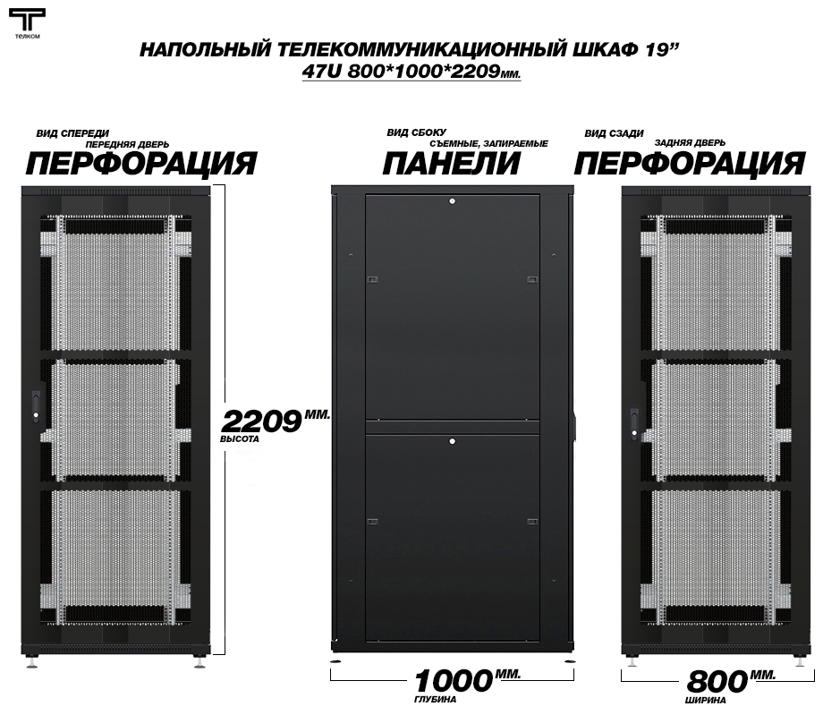 - Тип размера: 47U (ШхГхВ) 800х1000x2209мм.