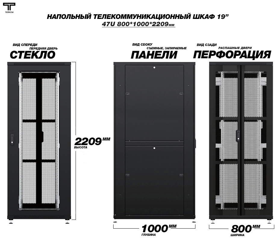- Тип размера: 47U (ШхГхВ) 800х1000x2209мм.