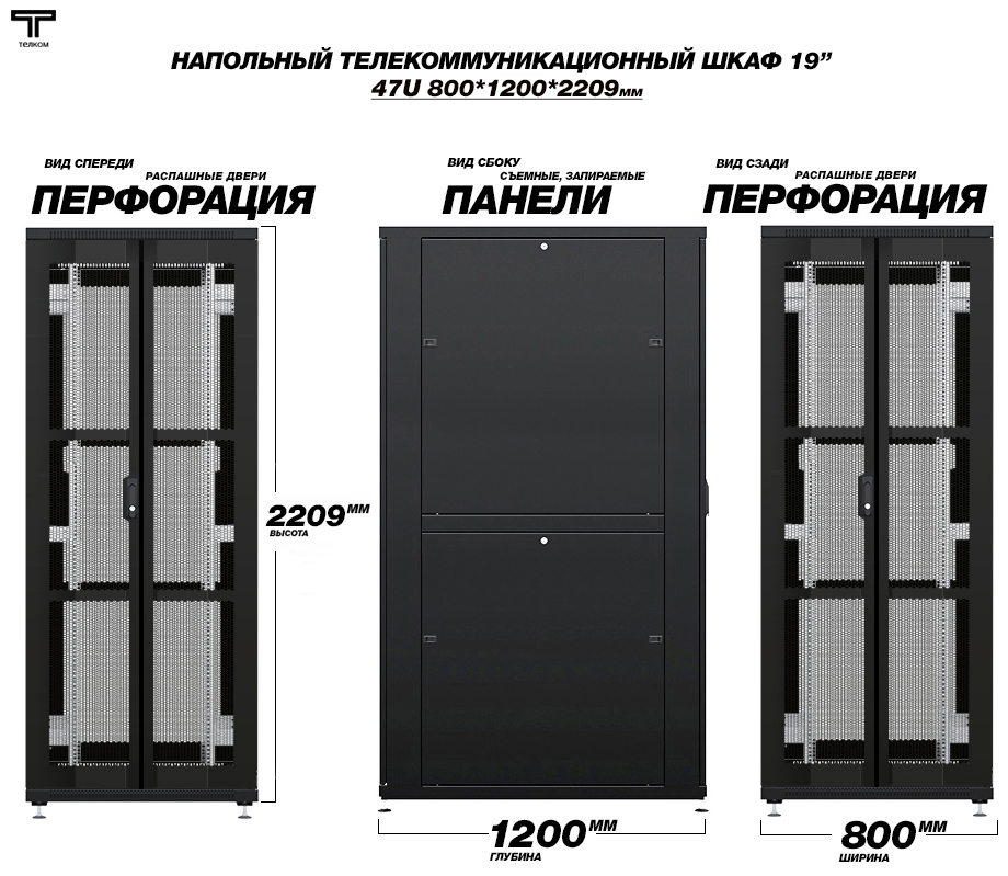 - Тип размера: 47U (ШхГхВ) 800х1200x2209мм.