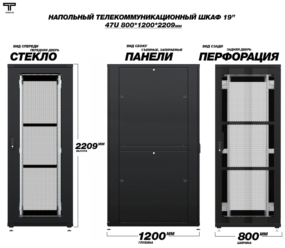 - Тип размера: 47U (ШхГхВ) 800х1200x2209мм